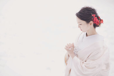 雪景色に映える和装や純白のウェディングドレス。